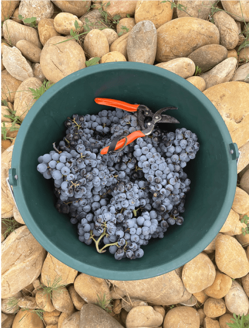À l’approche de la saison des vendanges, nous passons plusieurs fois dans les vignes pour goûter les raisins et les analyser afin de trouver le moment optimal pour les récolter. Nous cueillons les raisins quand ils sont murs et lorsque l'équilibre entre maturité physiologique et phénolique est atteint. Au moment des vendanges les grappes sont sélectionnées et cueillies à la main. Elles sont transportées dans de petites caisses de 20kg pour préserver les raisins intacts de la vigne à la cave, un second tri est effectué sur le tracteur. Les cépages que nous cultivons sont le grenache, syrah, mourvèdre, cinsault et counoise pour les rouges. En blanc grenache, clairette, roussanne et bouboulenc, et la clairette rose.